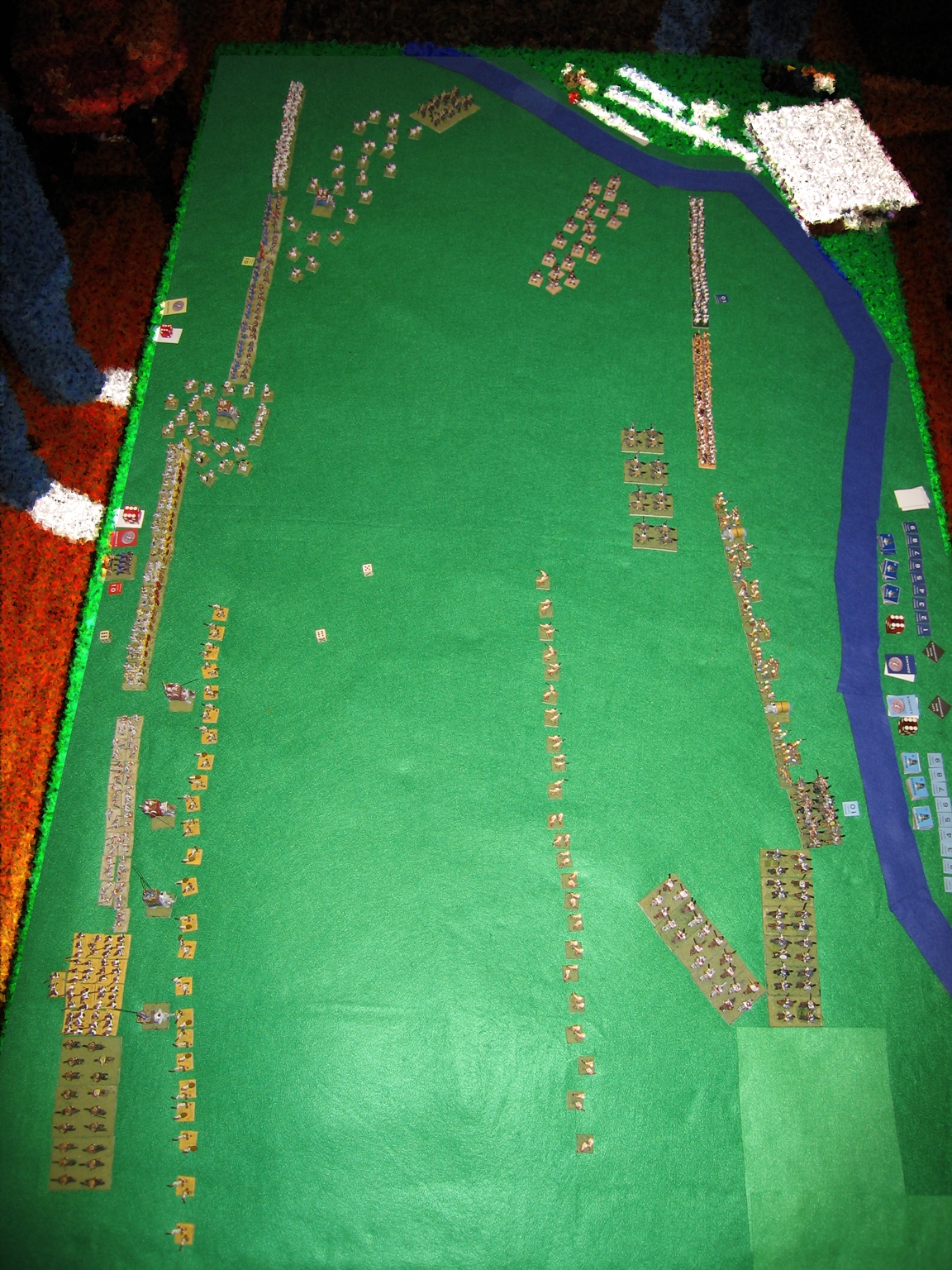 | Sun, 10 Feb 2008 | We did take a break for lunch, so the game appears more lengthy. If those darn elephants hadn't gone wild and crushed all those Persians on the left flank, then the game would have gone better for the Persians. | *Carthage = Alex Persian = Michael, Matt |