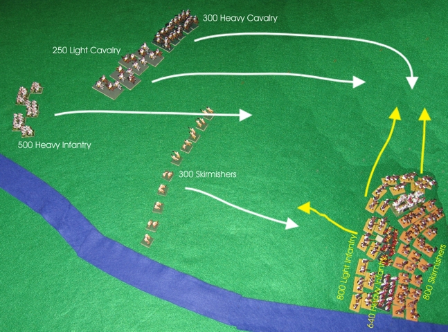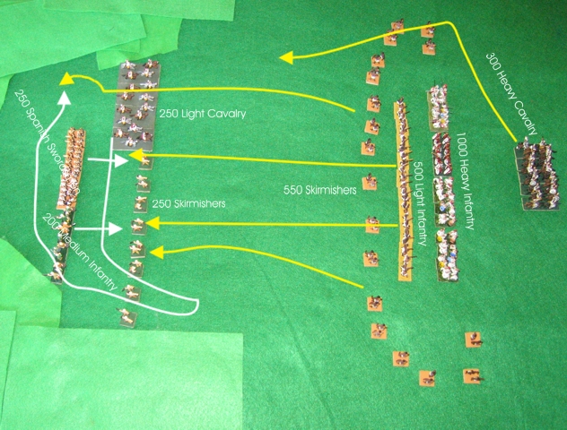 Greek Colonists = 2,448 Light Infantry = 608 Heavy Infantry = 1,840 Cavalry = none Celts = 2,336 Light Infantry = 544 Heavy Infantry = 1,536 Cavalry = 256 |